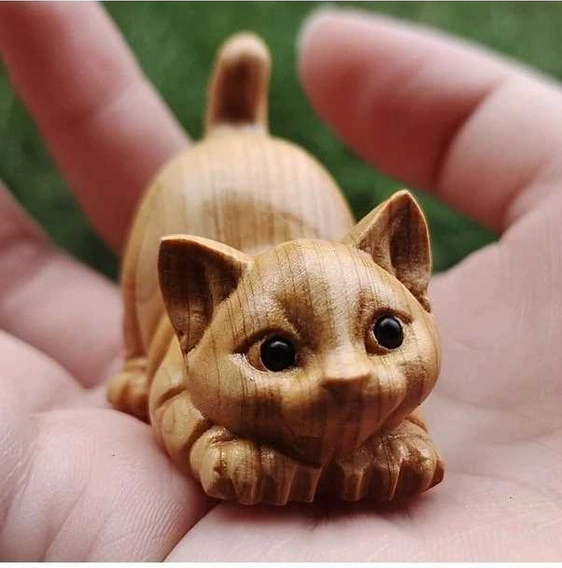 Trendooze Şirin El Yapımı Ahşap Kedi Heykeli - Ev & Ofis Dekoru, Güneşli022 Kedi