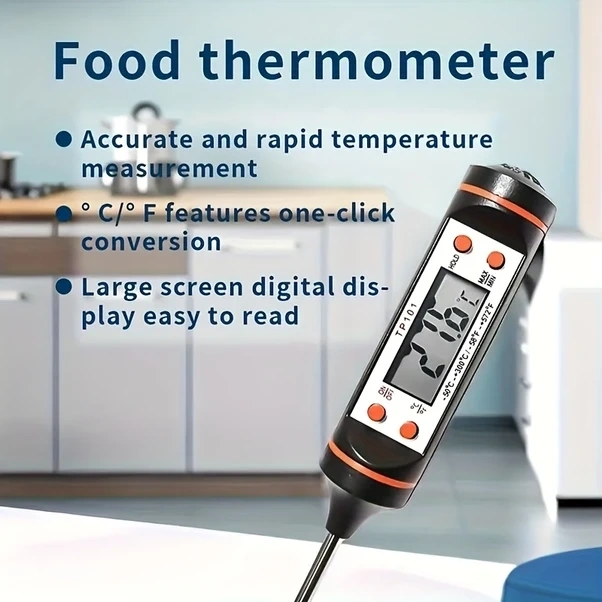 Trendooze Sunshine022 Beyaz Paslanmaz Çelik Prob Anlık Okuma Dijital Yemek Termometresi Ev, Restoran, Barbekü Kullanımı