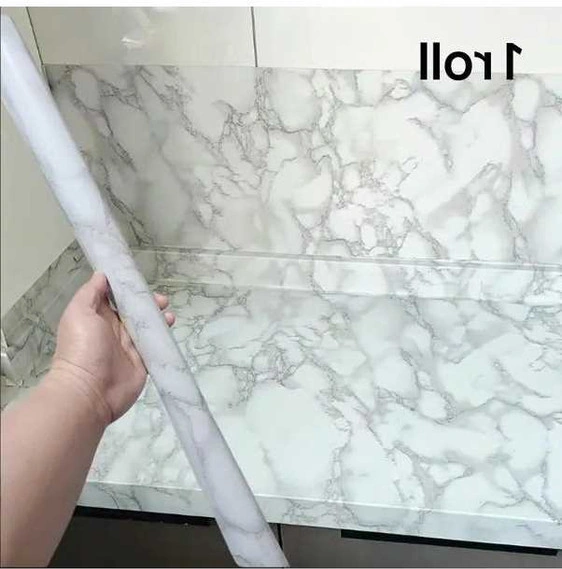 Trendooze Sunshine022 Gri Beyaz 60x500cm Yağ Geçirmez Mermer Desenli Folyo Beyaz - Gri