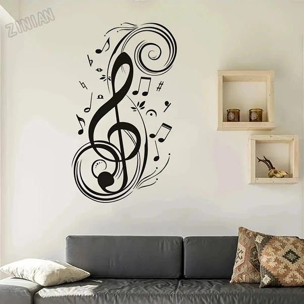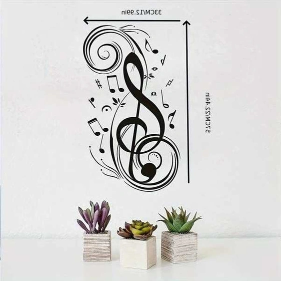 Trendooze Sunshine022 Siyah Müzik Notası Vinil Duvar Dekoru Çıkarılabilir Oturma Yatak Odası Dekor Siyah