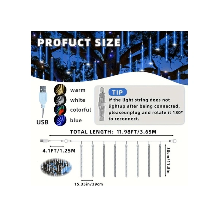 Trendooze Yas Parıltılı 192 Led 8 Tüp 118 İnç Mavi Usb Dekor Işık