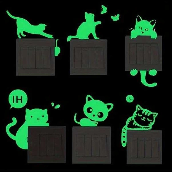 Trendooze Yeşil Fosforlu Sevimli Kedi Duvar Dekoru Mavi Ev Dekorasyon Çıkartması Mavi 07 Diğer