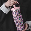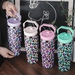 Trendooze Yeşil Leopar Desenli 30 Oz Paslanmaz Çelik Termos Çift Katmanlı Vakum Yalıtımlı Sızdırmaz Kapak Taşıma Saplı Kampçılı Yeşil
