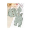 Triko Hırkalı 3'lü Ayarlanabilir Askılı Örgü Erkek Bebek Salopet Tulum Takım Set Yeşil