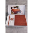 Triko Örme Battaniye Takımı-nakışlı Yatak Seti-tivoli Rosetta Kiremit