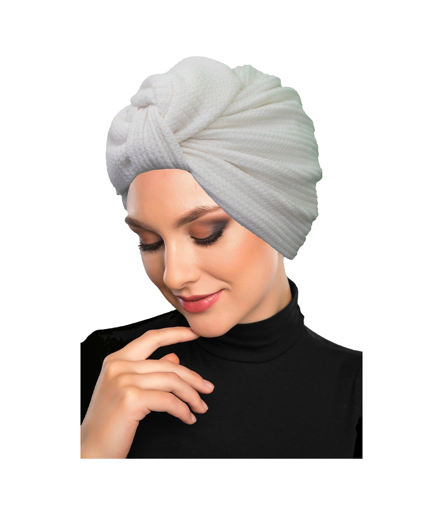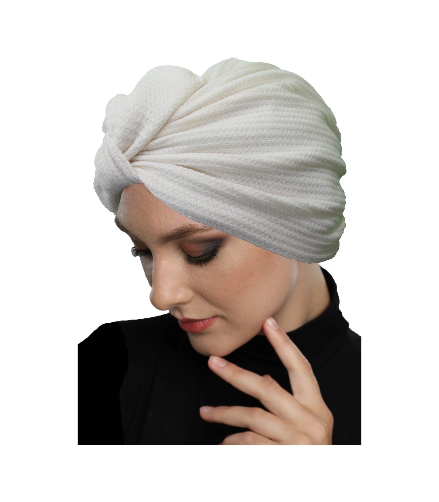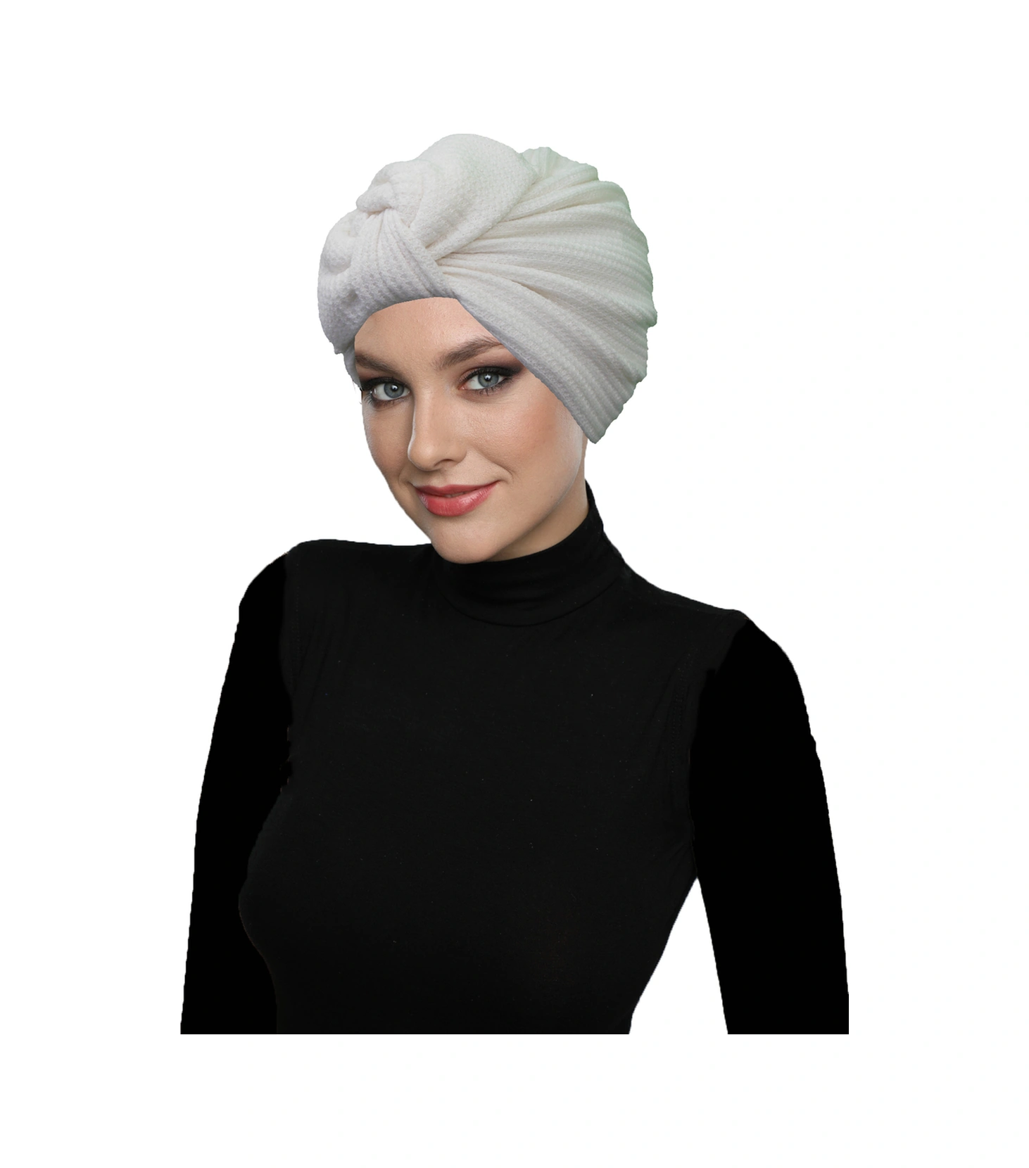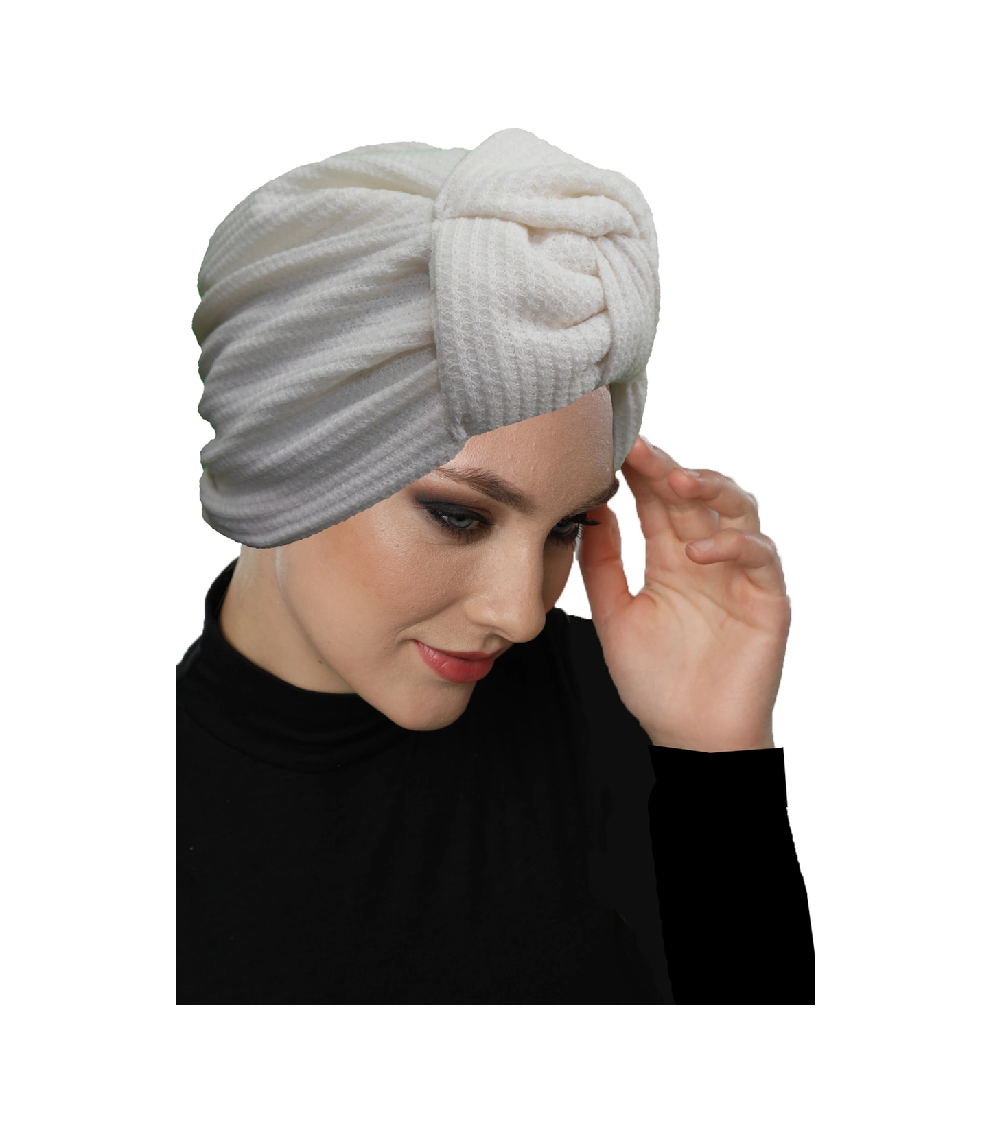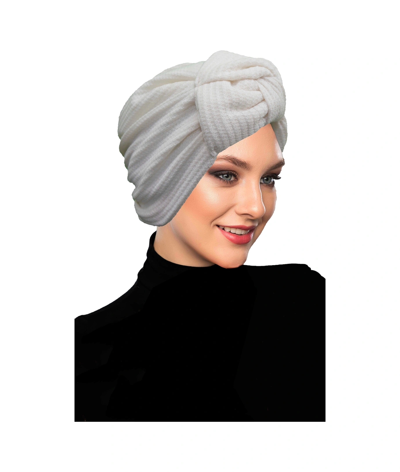 Triko Yelpaze Krem Astarlı Hazır Türban Tesettür Bone Krem