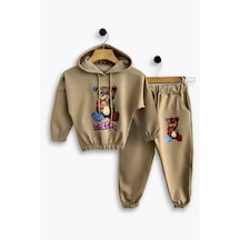Triliya Kız Çocuk Kapşonlu Mevsimlik Likralı Eşofman Takımı 4-12 Yaş 001