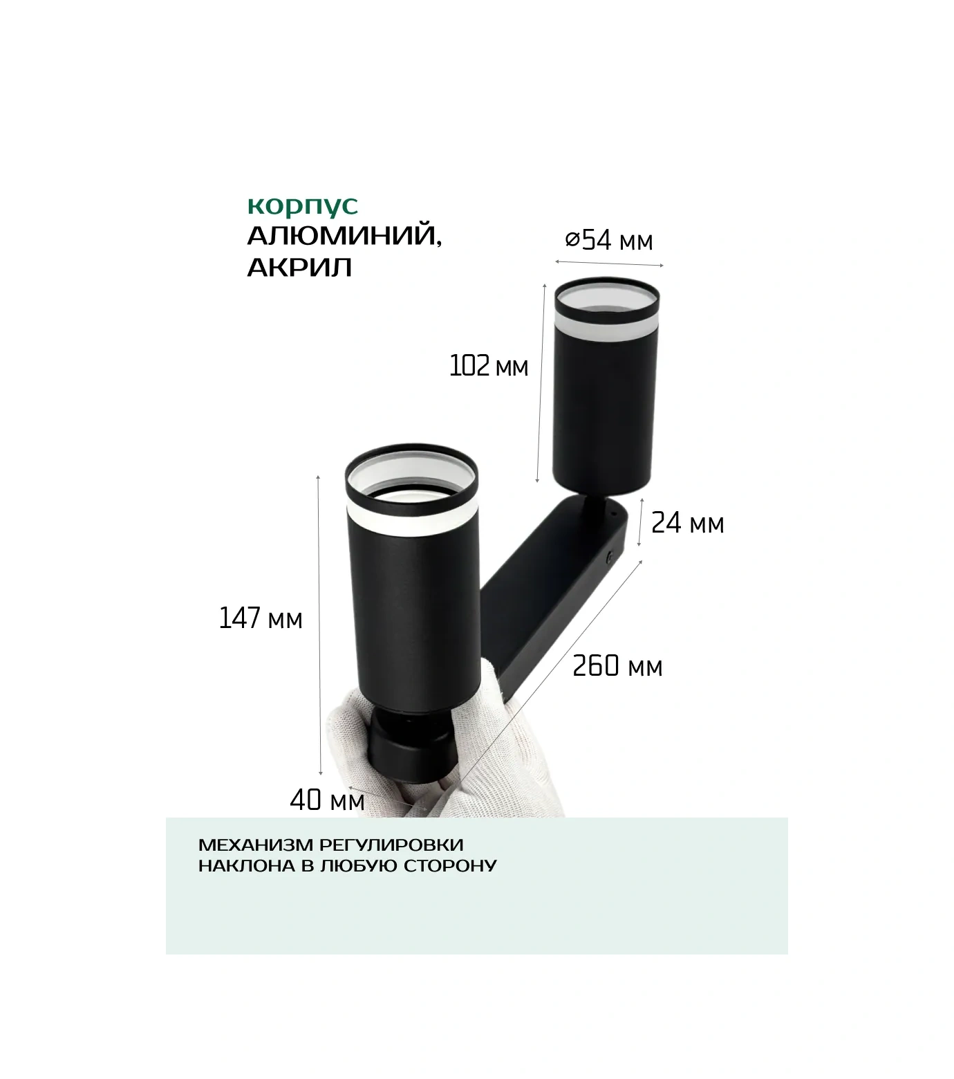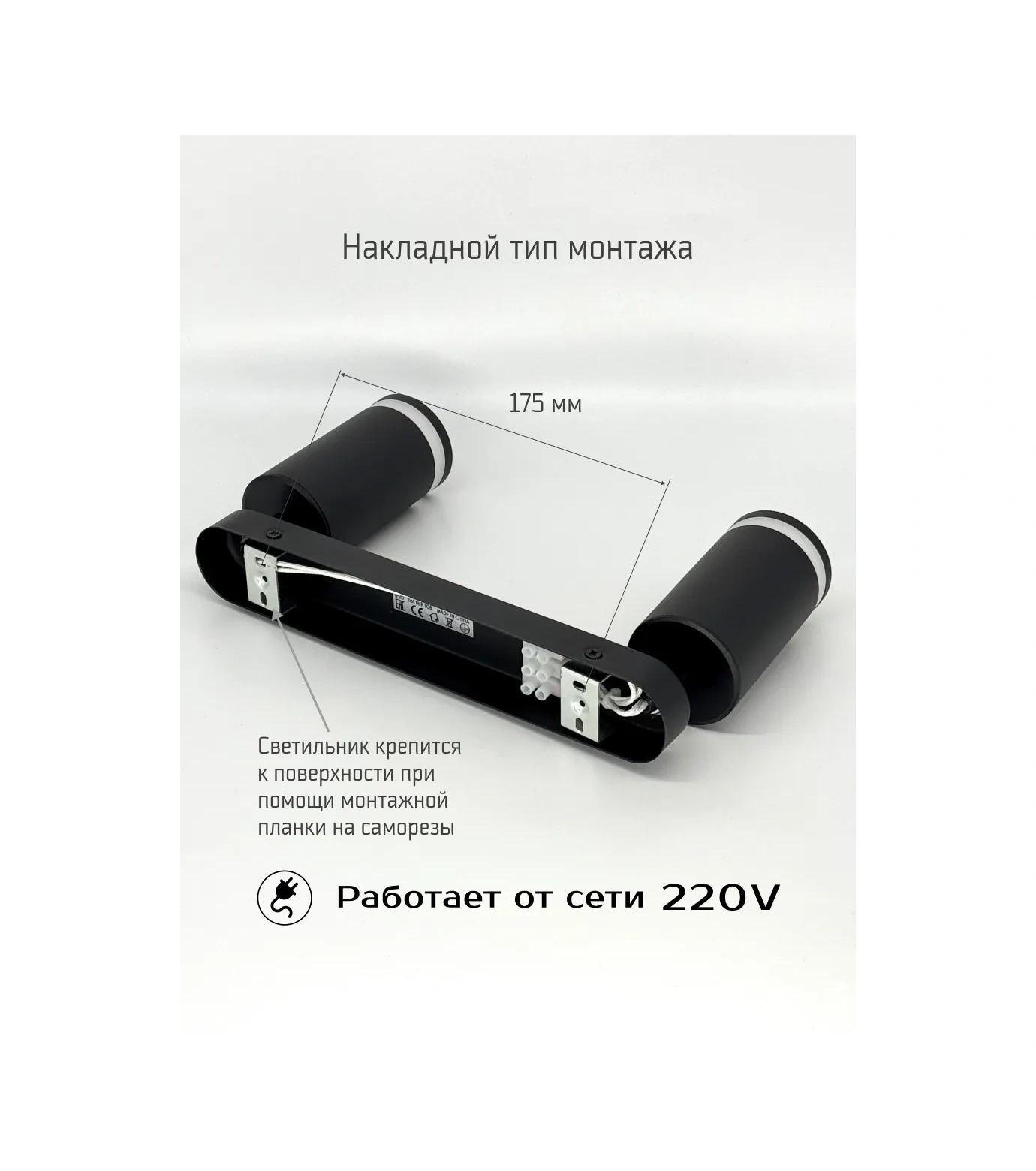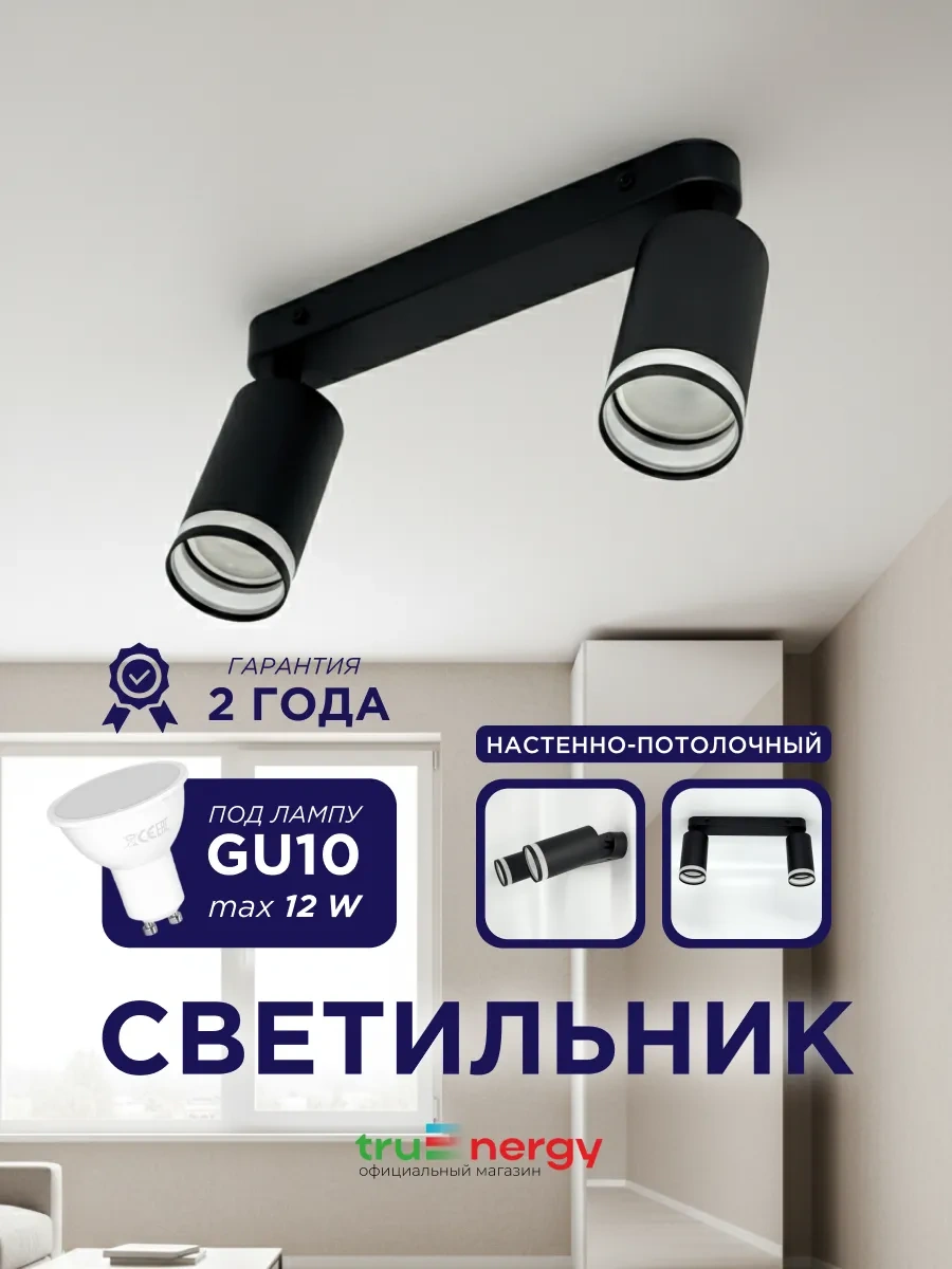 Truenergy 2 Ampullü Döner Duvar/tavan Spotu Aplik 254261523 Siyah