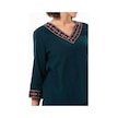 Truvakar Kol V Yaka Nakışlı Talya Şile Bezi Yazlık Bluz Petrol Ptrl-petrol
