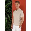 Deepsea Erkek Taba Slim Fit Nefes Alan Pamuklu Kumaş Dar Kesim Kıvrılmaz Yaka Polo Yaka Tişört 2503019 Taba