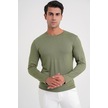 Deepsea Erkek Haki Uzun Kollu Dar Kalıp Ince Sıfır Yaka Sweatshirt 2300423 False Haki