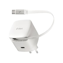 Ttec Smart Charger Gan 65W PD Usb-c + Dahili Usb-c Şarj Kablosu 2SCG05B Seyahat Hızlı Şarj Aleti - Beyaz