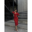 Tua Moda Kadın Kruvaze Yaka Balon Kol Simli Krep Kumaş Midi Boy Elbise Kırmızı