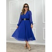 Tua Moda Kadın Şifon Kumaş Astalı Kloş Kesim Kruvaze Yaka Midi Boy Elbise Mavi