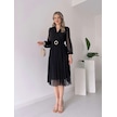 Tua Moda Kadın Şifon Kumaş Astalı Kloş Kesim Kruvaze Yaka Midi Boy Elbise Siyah