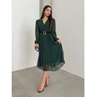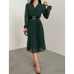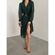 Tua Moda Kadın Şifon Kumaş Astalı Kloş Kesim Kruvaze Yaka Midi Boy Elbise Zümrüt Yeşili