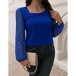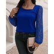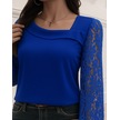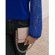 Tua Moda Kadın Uzun Kollu Asimetrik Yakalı Dantelli Ithal Krep Bluz Saks Mavi
