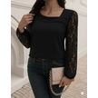 Tua Moda Kadın Uzun Kollu Asimetrik Yakalı Dantelli Ithal Krep Bluz Siyah