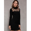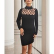 Tua Moda Kadın Uzun Kollu Bisiklet Yaka Lazer Kesim Inci Detay Viskon Iki Iplik Mini Boy Elbise Siyah