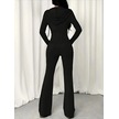 Tua Moda Kadın Uzun Kollu Kapşonlu Bağcıklı Önü Fermuarlı Viskon Iki Iplik Bluz Ve Pantolon Ikili Takım Siyah