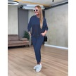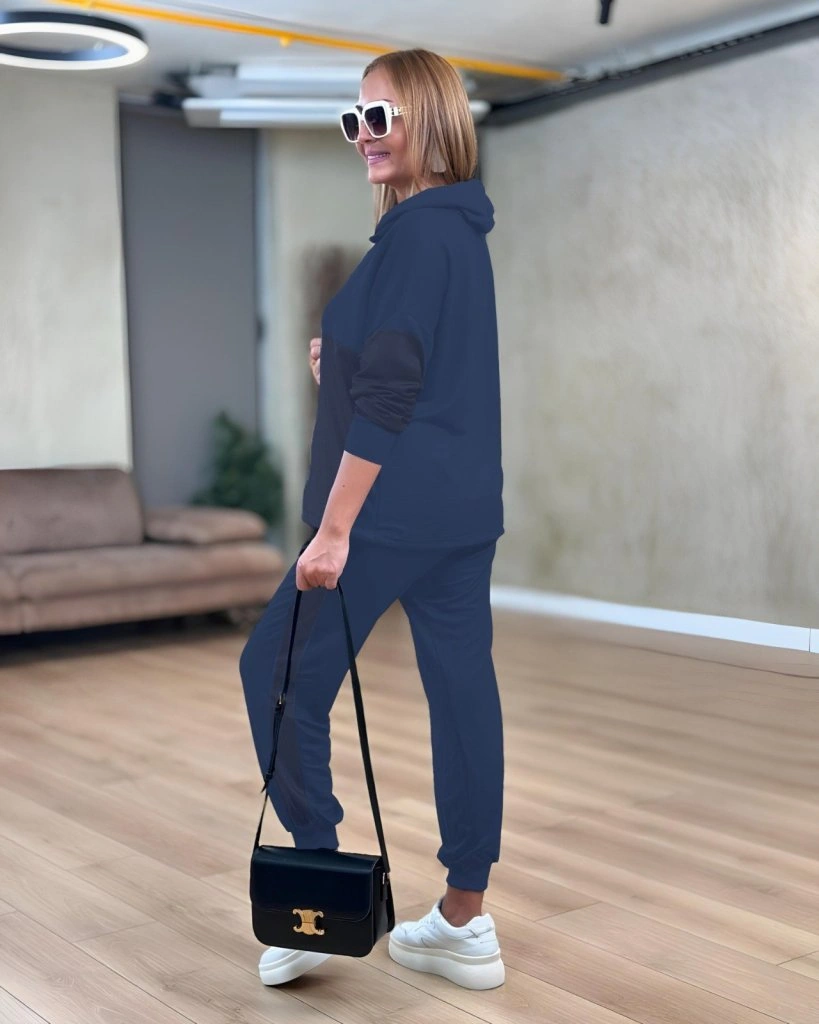 Tua Moda Kadın Uzun Kollu Kapşonlu Viskon Iki Iplik Bluz Ve Pantolon Ikili Takım Lacivert