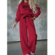 Tua Moda Kadın Uzun Kollu Nope Baskılı Beli Ribanalı Ikili Takım Kırmızı