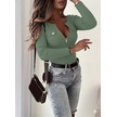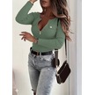 Tua Moda Kadın Uzun Kollu Önden Fermuar Ve Cepli Kaşkorse Bluz Yeşil