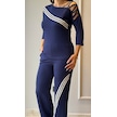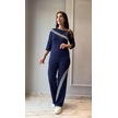 Tua Moda Kadın Uzun Kollu Truvakar Kol Tek Omuz Çapraz Şerit Detaylı Ribanalı Viskon Iki Iplik Bluz Ve Pantolon Ikili Takım Lacivert