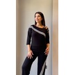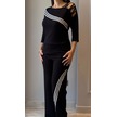 Tua Moda Kadın Uzun Kollu Truvakar Kol Tek Omuz Çapraz Şerit Detaylı Ribanalı Viskon Iki Iplik Bluz Ve Pantolon Ikili Takım Siyah