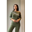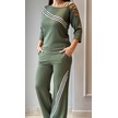 Tua Moda Kadın Uzun Kollu Truvakar Kol Tek Omuz Çapraz Şerit Detaylı Ribanalı Viskon Iki Iplik Bluz Ve Pantolon Ikili Takım Yeşil