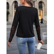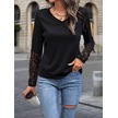 Tua Moda Kadın Uzun Kollu V Yakalı Dantelli Waffle Bluz Siyah