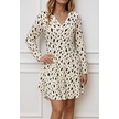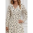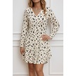 Tua Moda Kadın Uzun Kollu V Yakalı Desenli Kısa Keten Elbise Bej