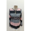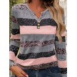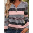 Tua Moda Kadın Uzun Kollu Yakadan Düğmeli Çizgili Desenli Süprem Bluz Pembe