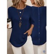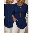 Tua Moda Kadın Uzun Kollu Yuvarlak Yaka Arkadan Düğmeli Waffle Bluz Lacivert