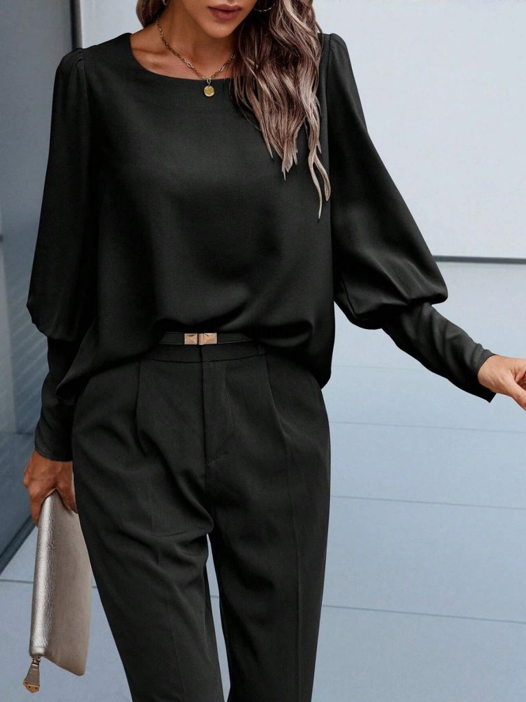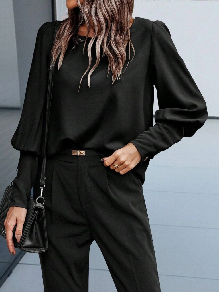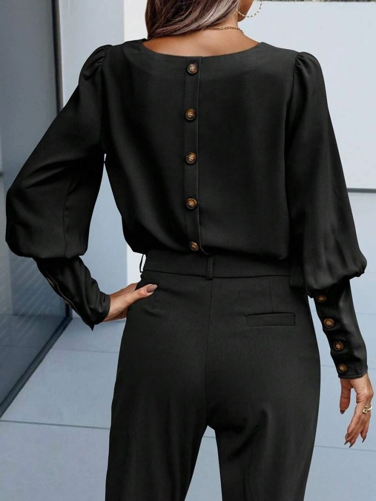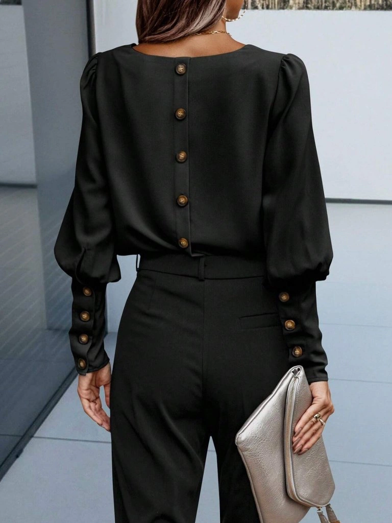 Tua Moda Kadın Uzun Kollu Yuvarlak Yakalı Düğmeli Ithal Krep Bluz Siyah