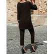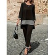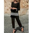 Tua Moda Kadın Uzun Kollu Yuvarlak Yakalı Kaz Ayağı Detaylı Viskon Iki Iplik Bluz Ve Pantolon Ikili Takım Siyah