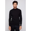 Tudors Erkek Slim Fit Dar Kesim Yarım Balıkçı Yaka Tüylenmeyen Yumuşak Dokulu Siyah Kazak-28773-siyah Siyah
