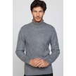 Tudors Slim Fit Dar Kesim Tam Balıkçı Yaka Desenli Gri Erkek Triko Kazak-29718-gri Gri