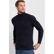 Tudors Slim Fit Dar Kesim Tam Balıkçı Yaka Saç Örgü Desenli Erkek Kazak-20004 Lacivert