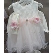 Tül Kemerli Taşlı Çiçek Aksesuarlı Badili Bandanalı Bebe Kız Mevlütlük Elbise Pembe