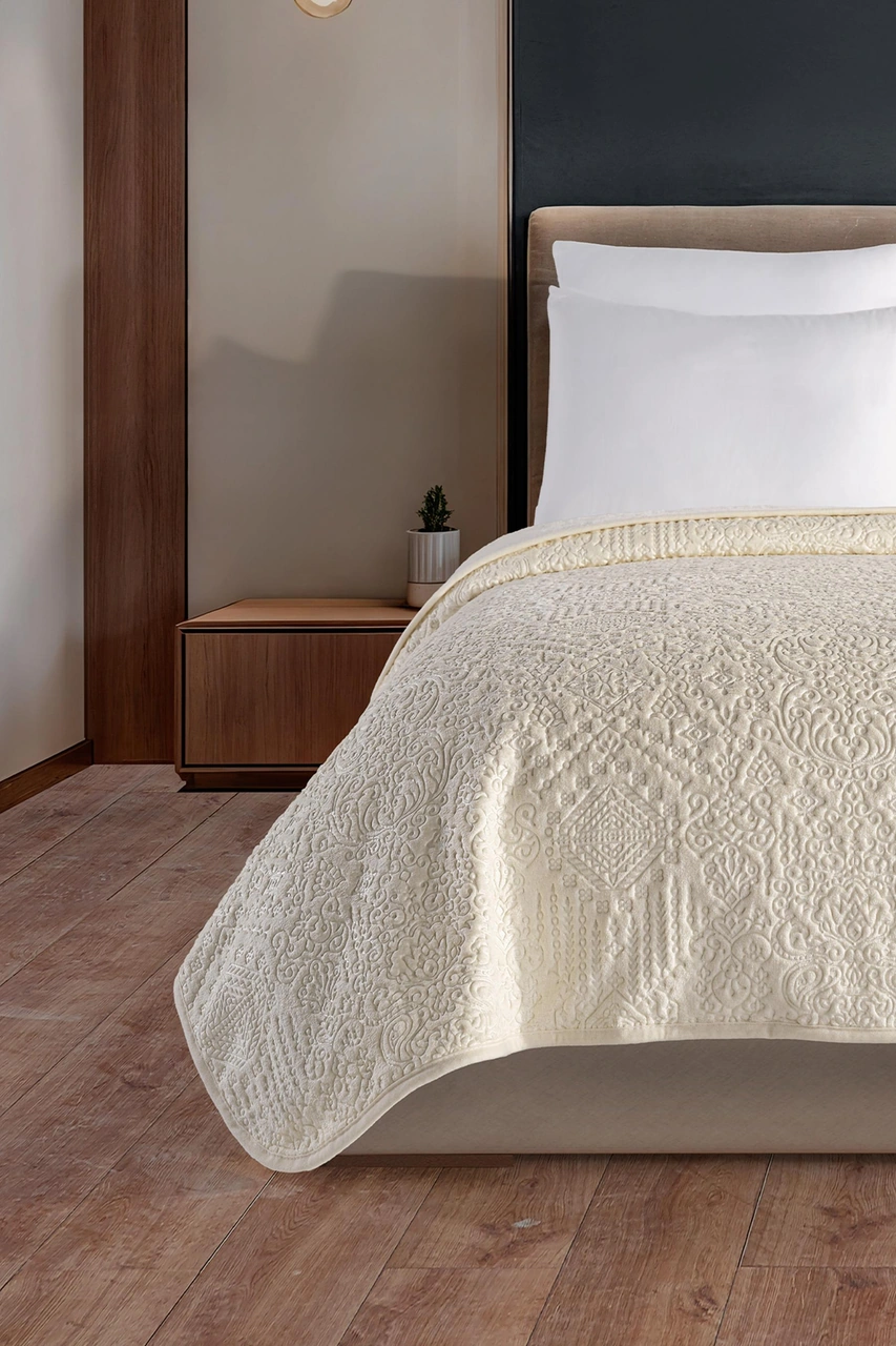Tulia 220x240 Battal Boy Emboss Battaniye Krem