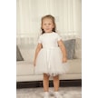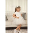 Tüllü Baskısız Düz Üst Kısım Ribana Alt Kısım Astarlı Tütü Etek Kız Çocuk Prenses Kısa Kollu Elbise Beyaz