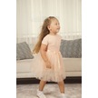 Tüllü Baskısız Düz Üst Kısım Ribana Alt Kısım Astarlı Tütü Etek Kız Çocuk Prenses Kısa Kollu Elbise SOMON