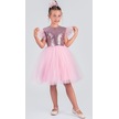 Tüllü Kız Çocuk Kpl Elbise Mnk0526 Koyu Pembe