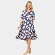 Türen Yaprak Desenli Kısa Kollu Elbise 3354/lacivert Çok Renkli