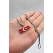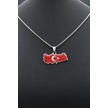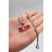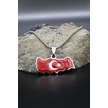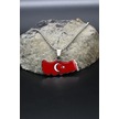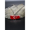Türk Bayrağı - Ay Yıldızlı Mineli Kolye Paslanmaz Çelik Zincir 902296 Gümüş