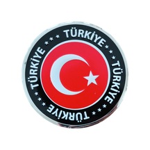 Türk Bayrağı Türkiye Yazılı Yuvarlak Etiket Metal Sticker 7cm