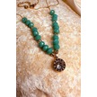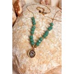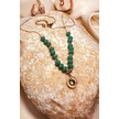 Turkuaz Boncuk Zirkon Tek Taşlı Gold Renk Paslanmaz Çelik Kadın Zincir Kolye