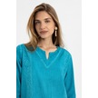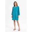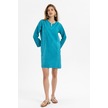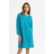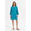 Turkuaz İşlemeli Uzun Kollu Astarsız Pamuklu Kısa Elbise-turkuaz Turkuaz