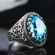 Turkuaz Paraiba Taşlı Yanı Işlemeli Özel Seri Erkek Gümüş Yüzük - Ey3128